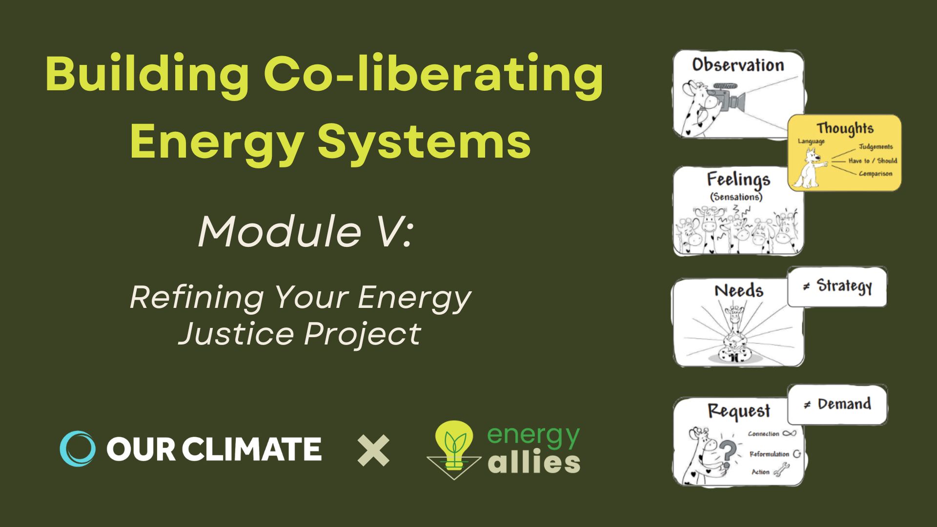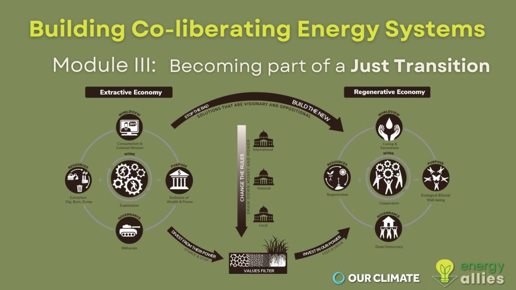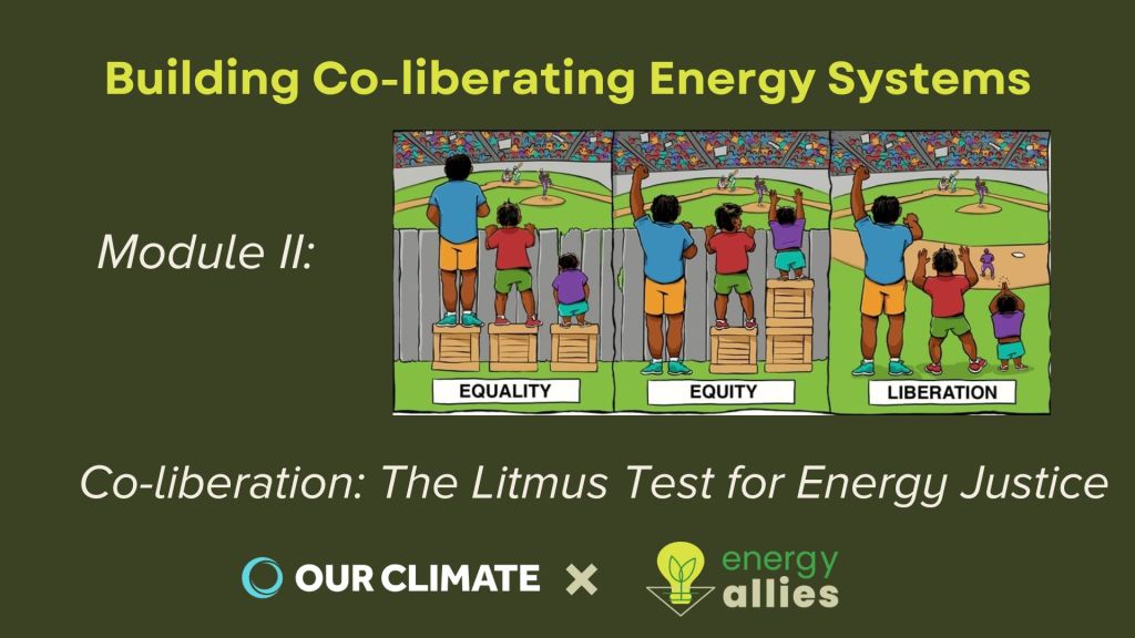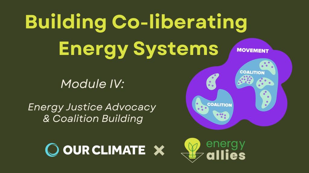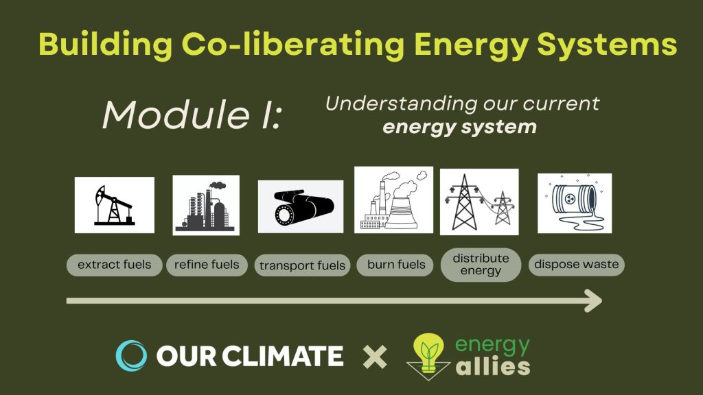At Our Climate, I helped develop nation-wide curricula on organizing basics (levels of organizing, activist types, spectrum of allies, power mapping, etc) systems of oppression and liberation, policy advocacy and more. I also developed and DEIJ practices within my own state program including: actionable Land and Labor Acknowledgments, adaptations of Tema Okun’s White Supremacy Culture and its antidotes, and adaptations of Nonviolent Communication and Conscious Leadership principles for climate justice.